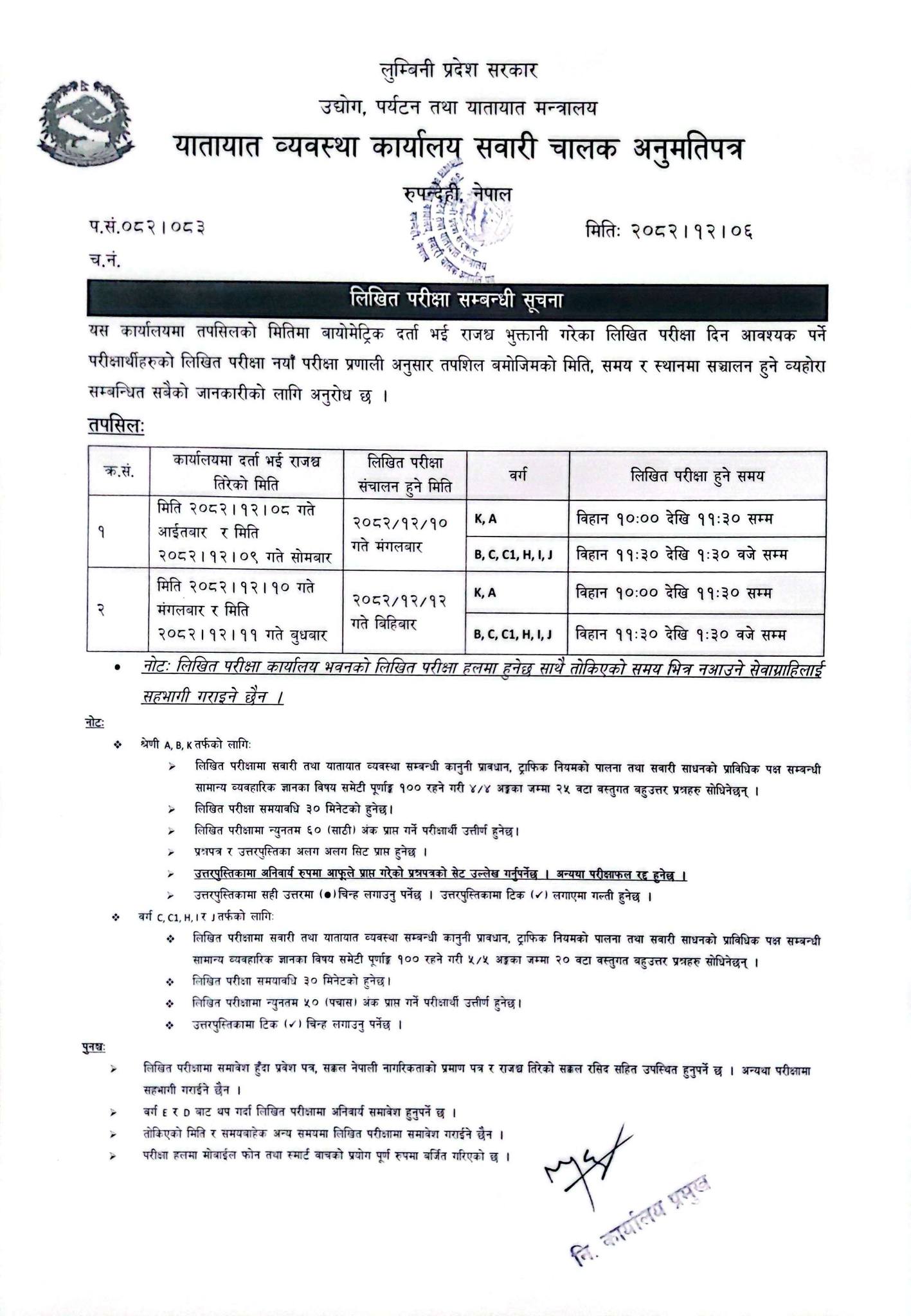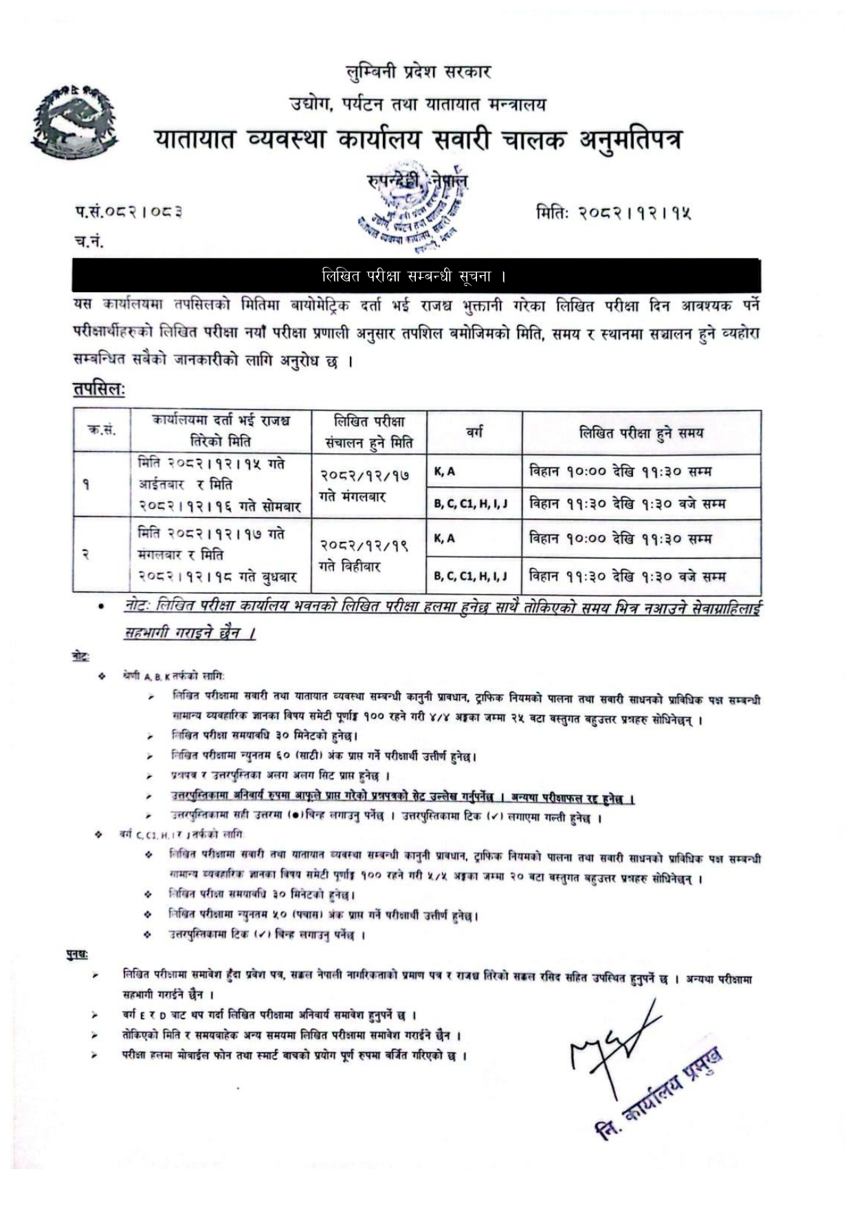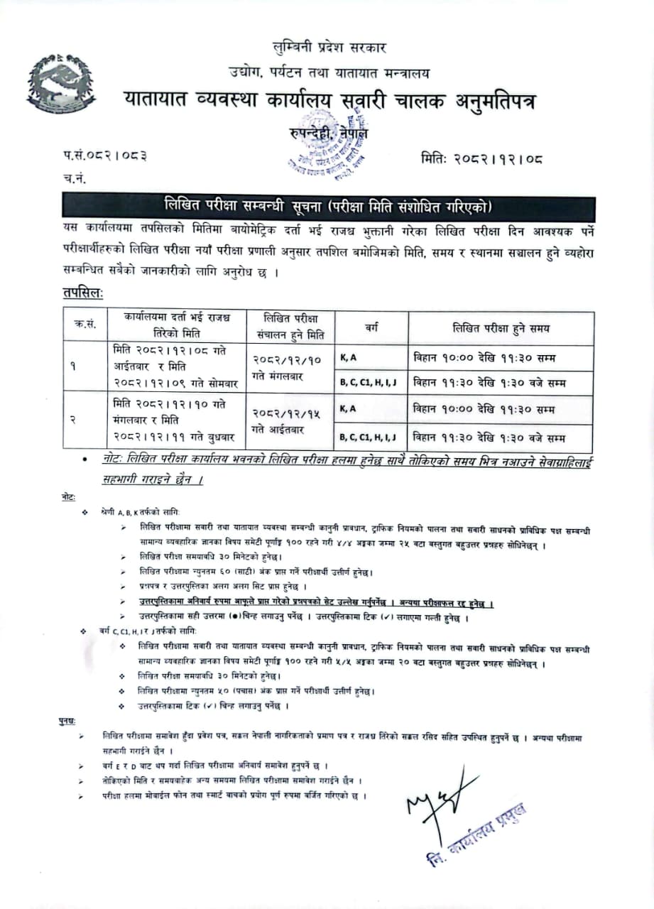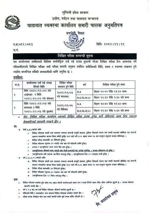 March 20, 2026 लिखित परीक्षा सम्बन्धी सुचना । (परीक्षा मिति संशोधन गरिएकोले मिति २०८२/१२/०८ गते प्रकाशित संशोधित सूचना हेर्नुहुन अनुरोध छ ।)