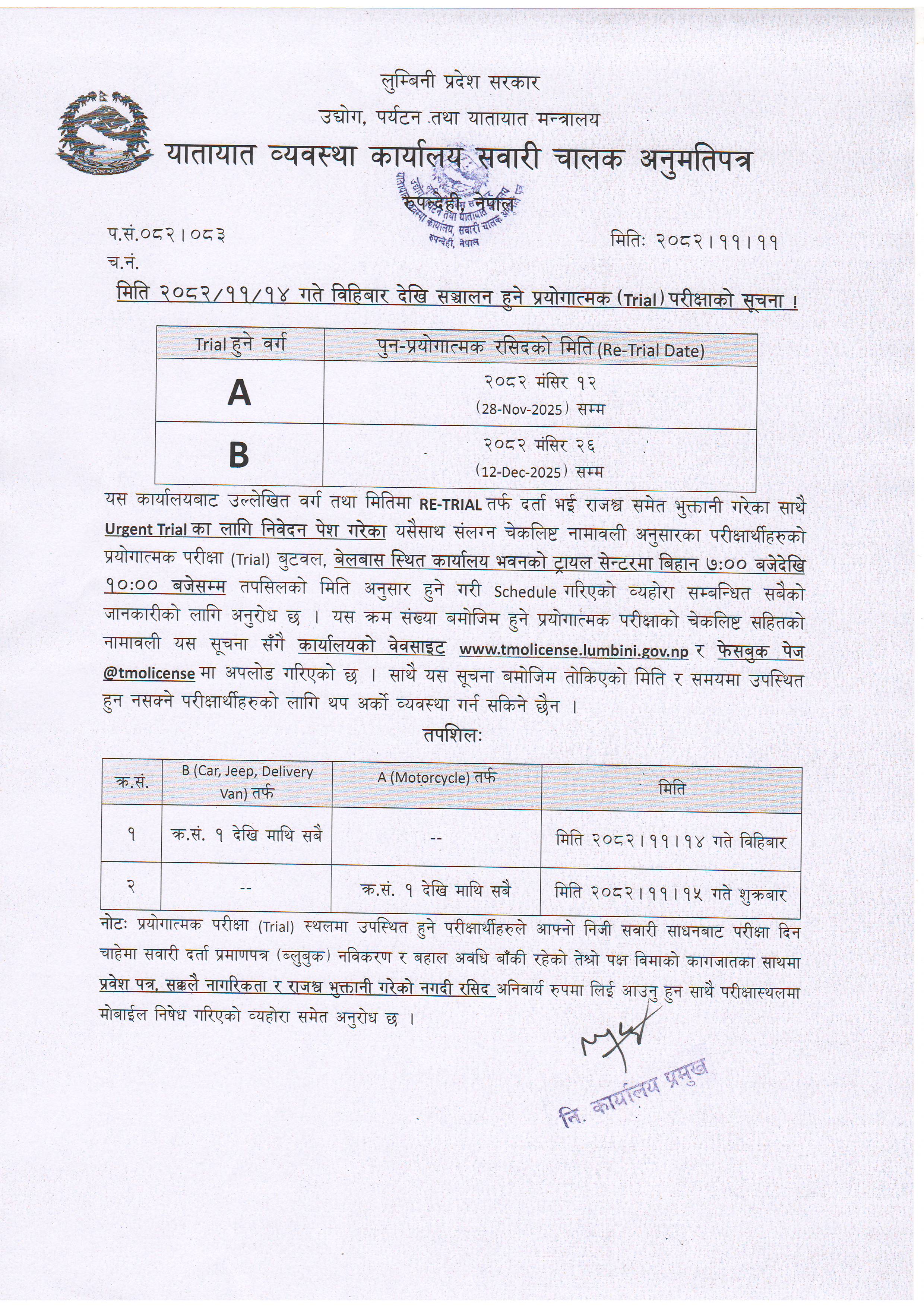 मिति २०८२।११।१४ गते विहिबार देखि संचालन हुने प्रयोगात्मक परीक्षाको सूचना