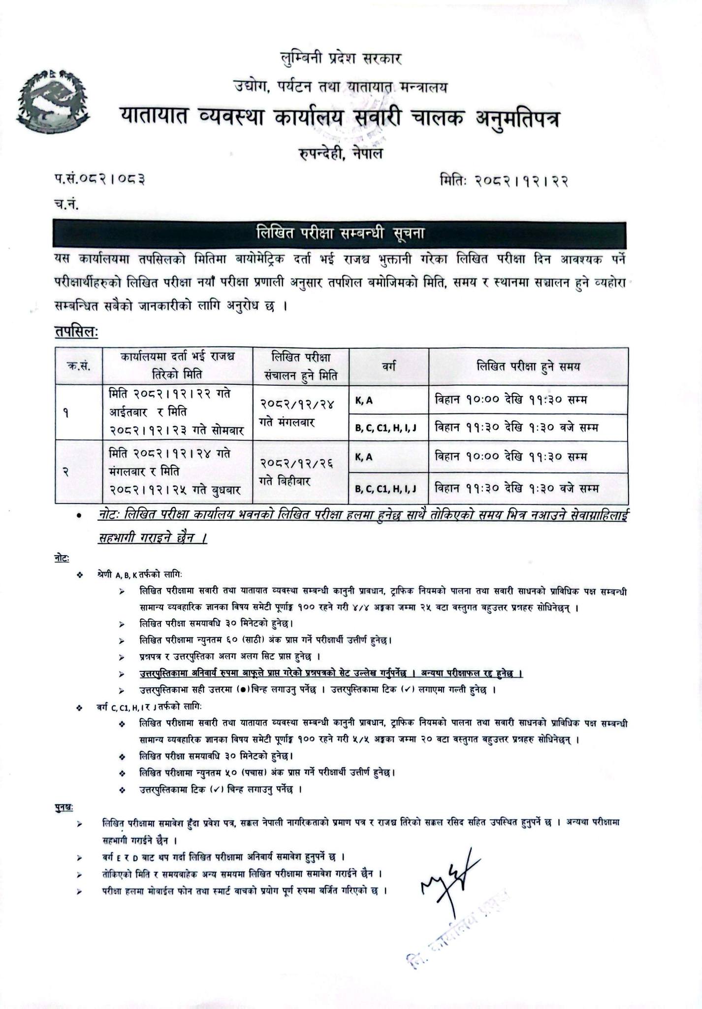 यातायात व्यवस्था कार्यालय सवारीचालक अनुमतिपत्र, रुपन्देही